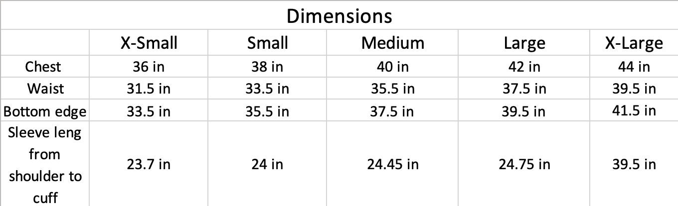 - Adjustable cuffs with snaps